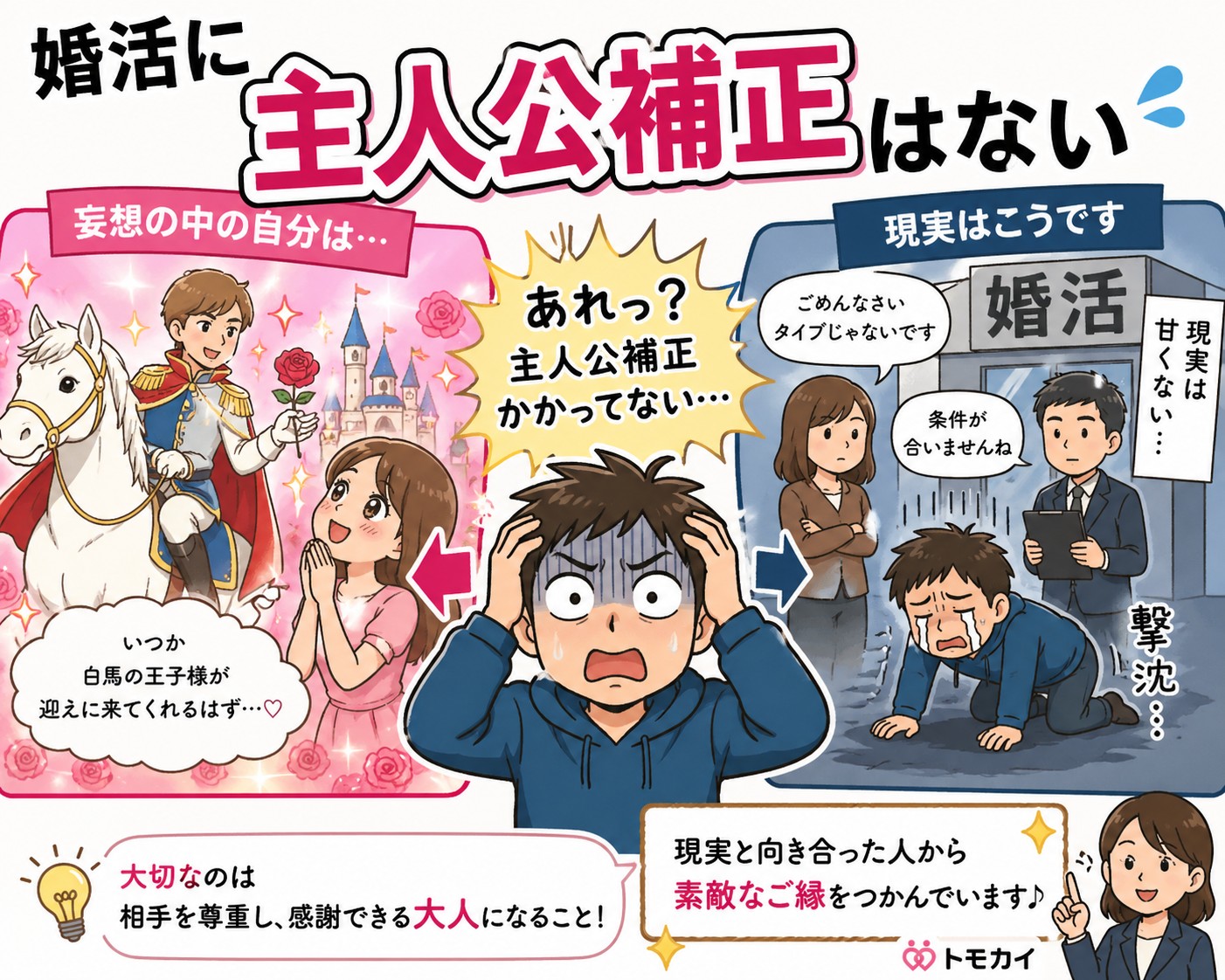 「いい人がいれば自然に結婚できる」 「いつか理想の相手に選ばれる」 そう信じて婚活をしている人は少なくありません。 でも婚活には、漫画やドラマのような主人公補正はありません。 特別扱いされる前提で動く人ほど、婚活では苦戦 […]