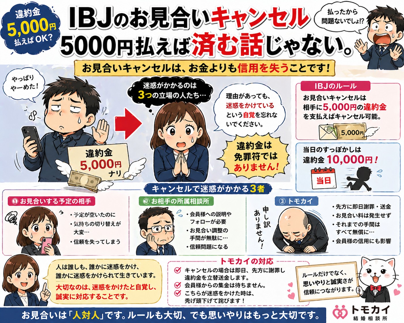 お見合いキャンセルには違約金があります。 でも本当に問題なのは5,000円ではありません。 キャンセルで失うのは、お金より信用だからです。 今日は、IBJのお見合いキャンセルとペナルティについて、制度だけでなく本質の話を […]