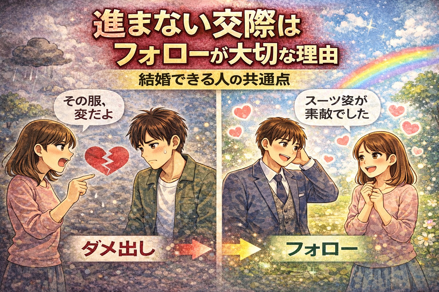 婚活では、相手の欠点が見えることがあります。 しかし、ダメ出しをする人は結婚から遠ざかり、フォローをする人は結婚に近づきます。 人は、自分を否定する人より、自分を受け入れてくれる人と一緒にいたいと思うからです。 結婚でき […]