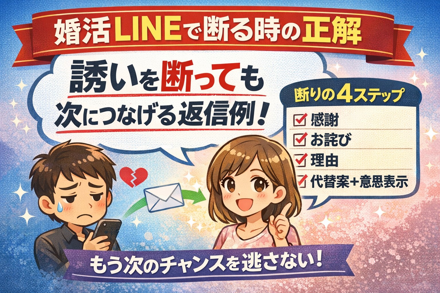 婚活で関係が終わる原因の多くはLINEです。 ・いい感じだったのに返信が来なくなる ・やり取りが続かず自然消滅する ・LINEで距離を縮めるどころか嫌われる これは珍しいことではなく、典型的な失敗パターンです。 原因はシ […]