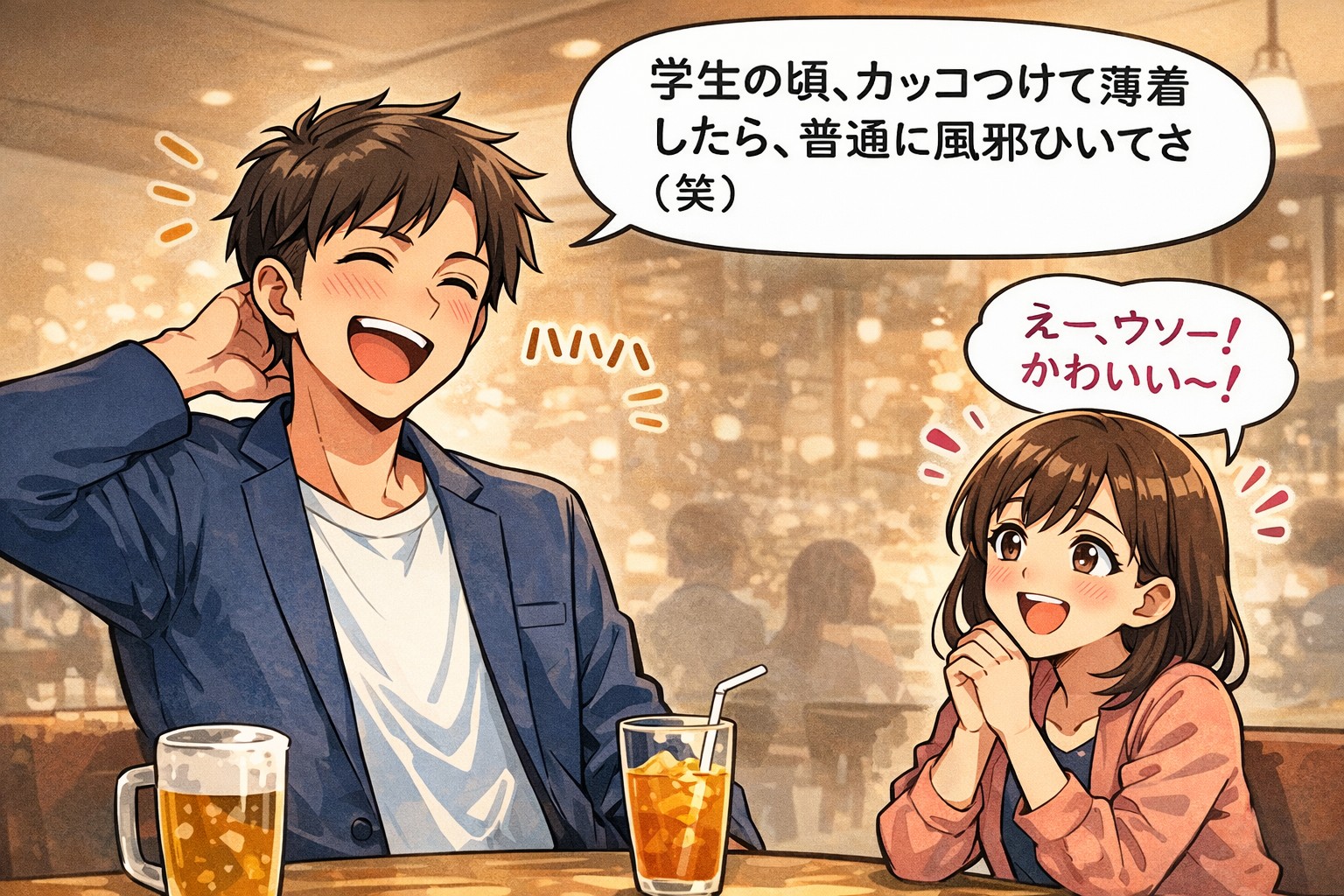 思わず笑ってしまうような失敗談は、男性の人柄を自然に伝えてくれます。