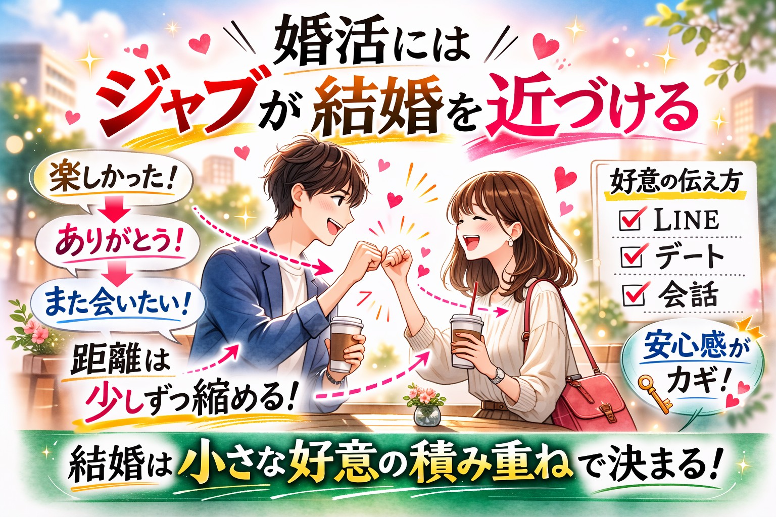 このページでは、婚活における好意のジャブの重要性と、結婚につながる距離の縮め方を解説します。